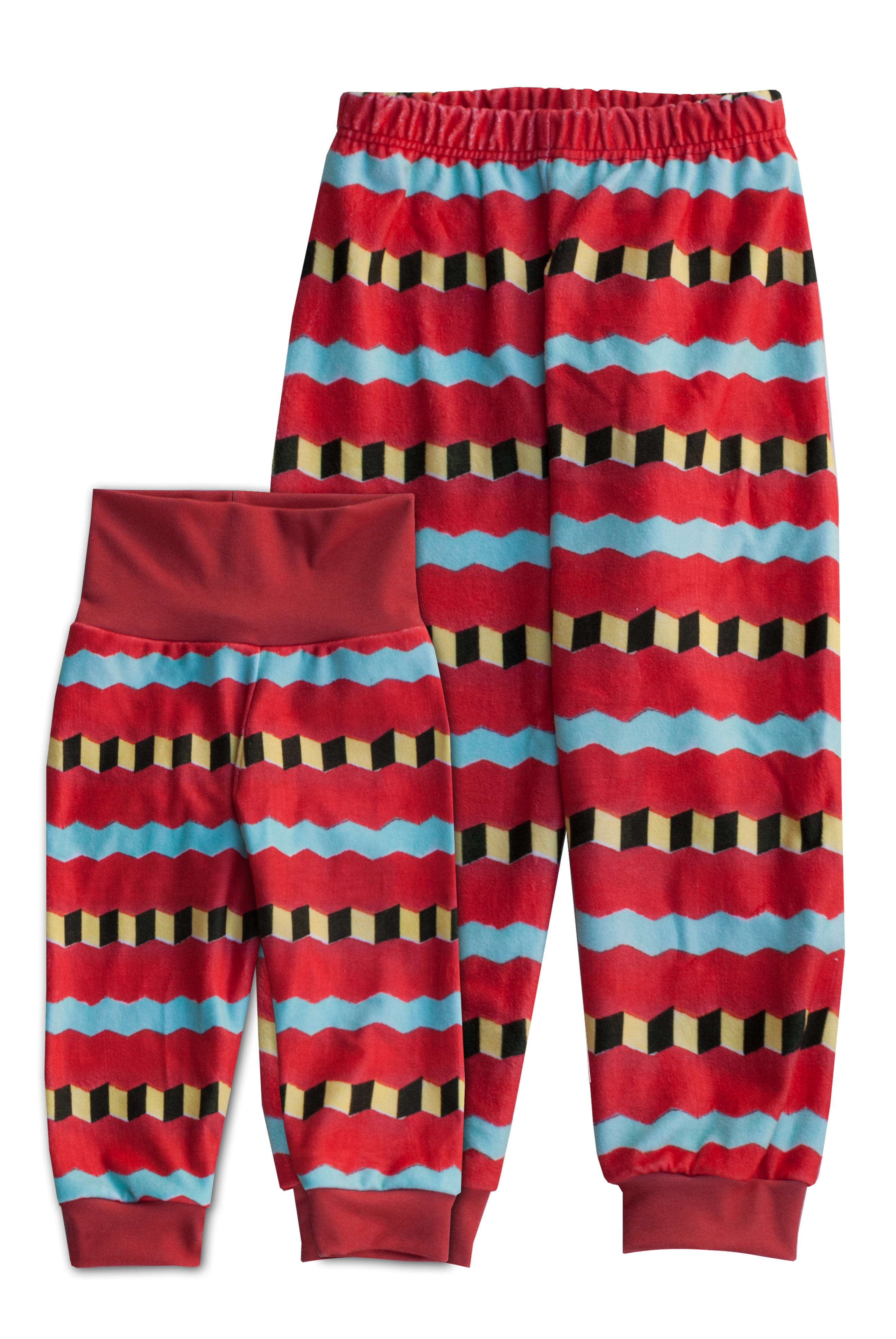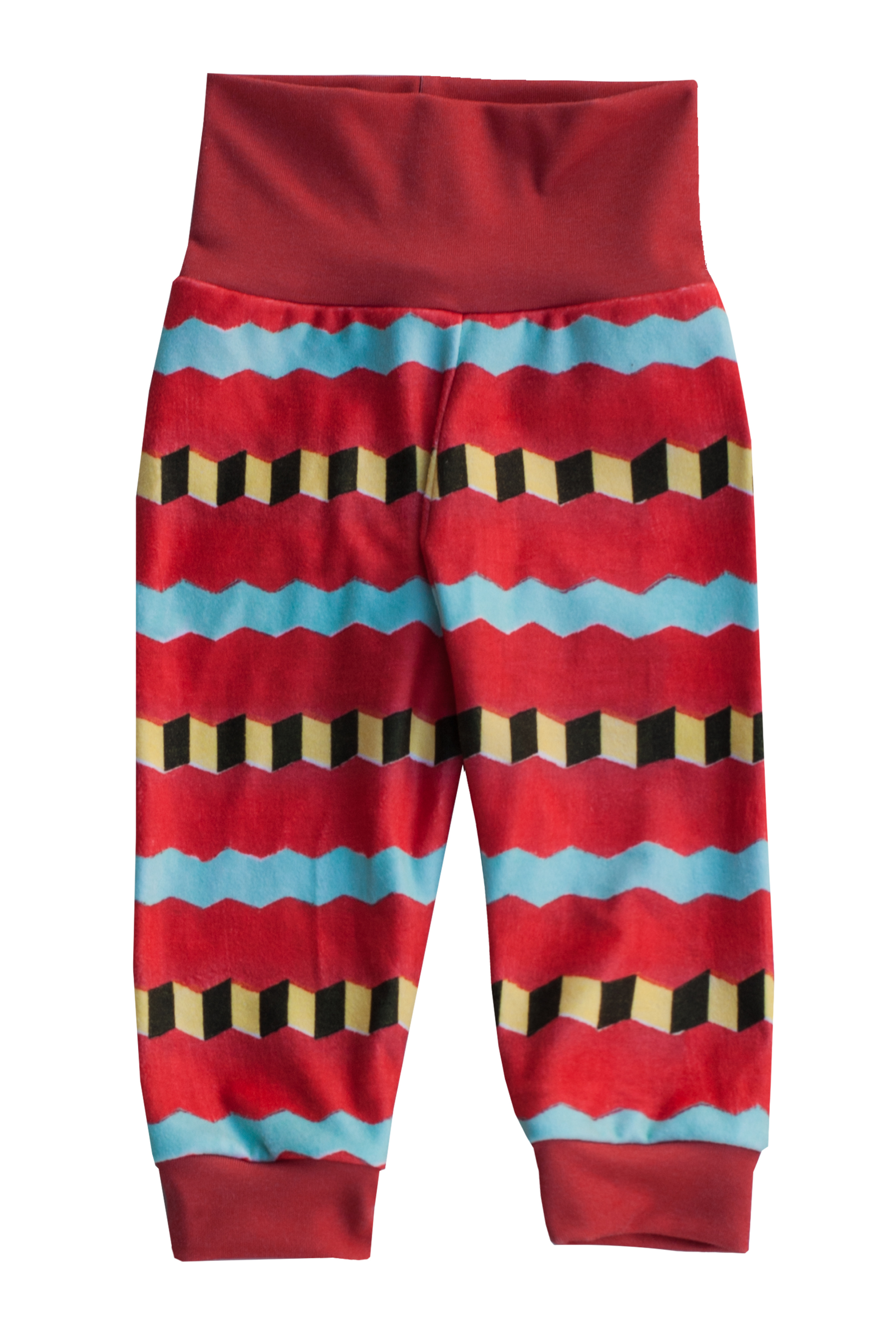 A real eye-catcher: the pants impress with their vibrant colors, especially the bold red, combined with striking black and yellow zigzag stripes. The design features a traditional Japanese woodcut and gives the pants a unique look that will delight children and parents alike.